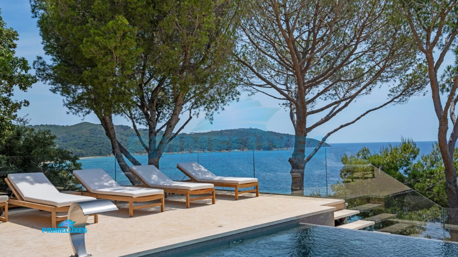 Perched in an exclusive waterfront location, Villa Beluga boasts panoramic vistas of the Mediterranean Sea, Cavalaire Bay, and the Golden Isles. Every glance captures the essence of the French Riviera, with sweeping seascapes that inspire awe. Spanning 650 m² of refined interiors and 2,500 m² of lush, landscaped grounds, this villa accommodates up to 12 guests in an atmosphere of absolute serenity.