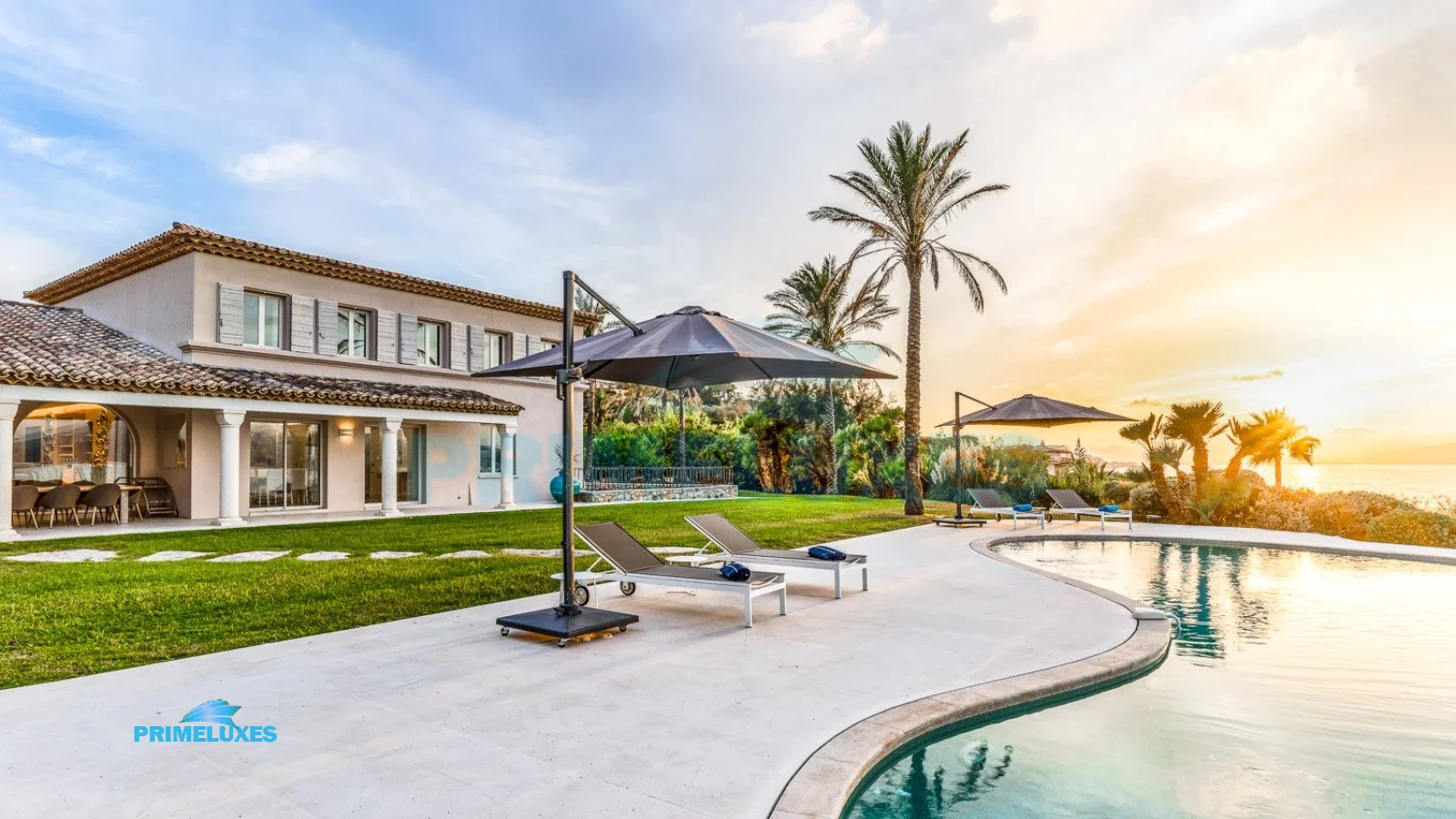 The heated swimming pool, surrounded by sun loungers and swaying palm trees, invites you to soak in the French Riviera sunshine by day or enjoy a moonlit swim under the stars.