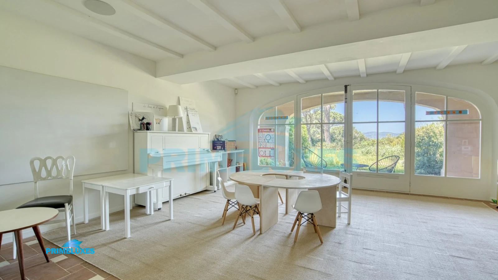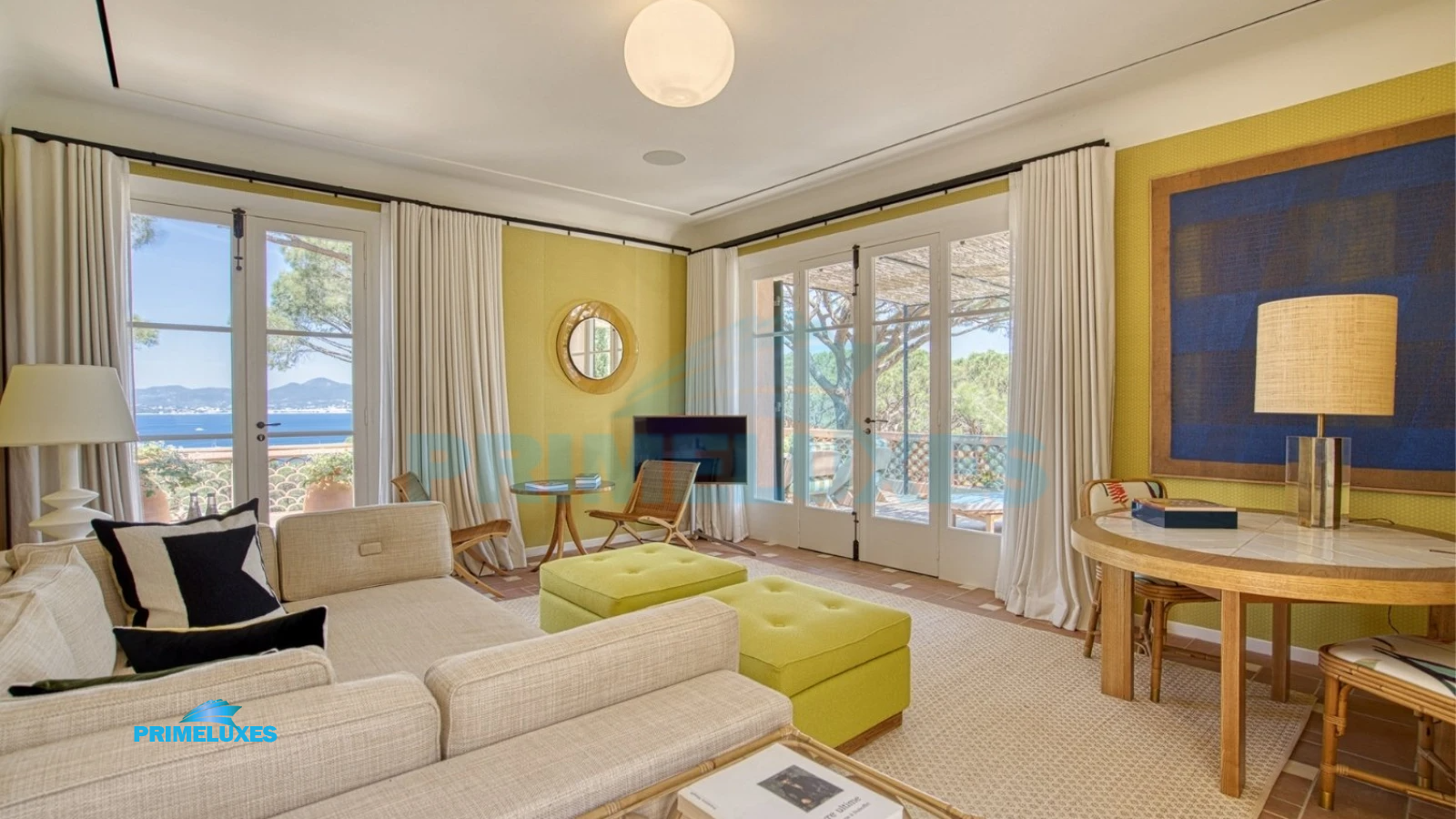 From its signature trellis-patterned floors to its warm palette of ochres, sage greens, and deep blues, every inch of Villa Florentina is curated to evoke comfort, joy, and style. Arched doorways lead to serene, sun-drenched suites, and a seamless indoor-outdoor layout invites guests to fully immerse in the art of Mediterranean living.