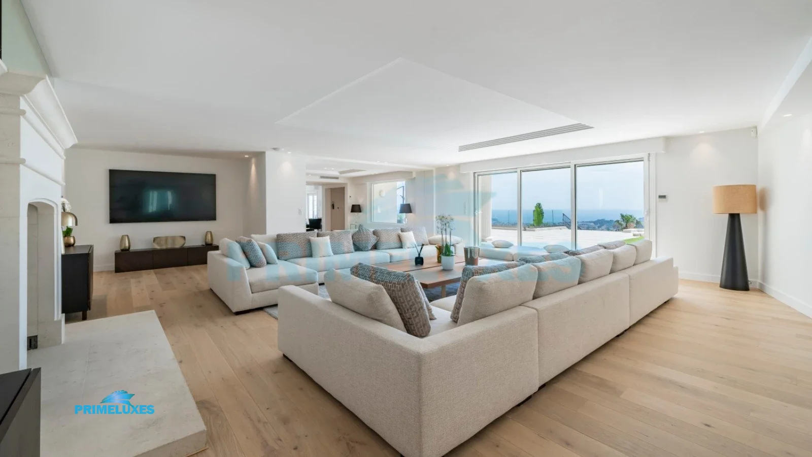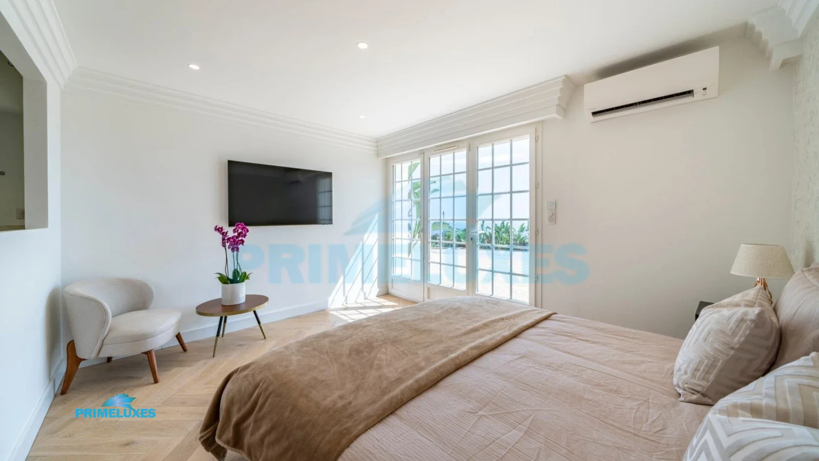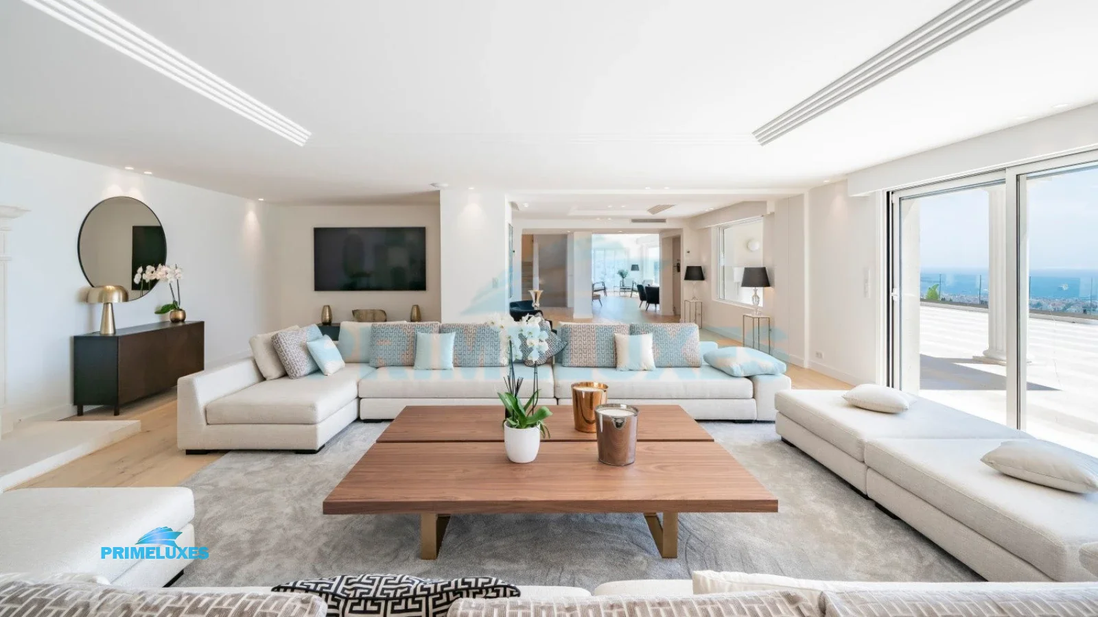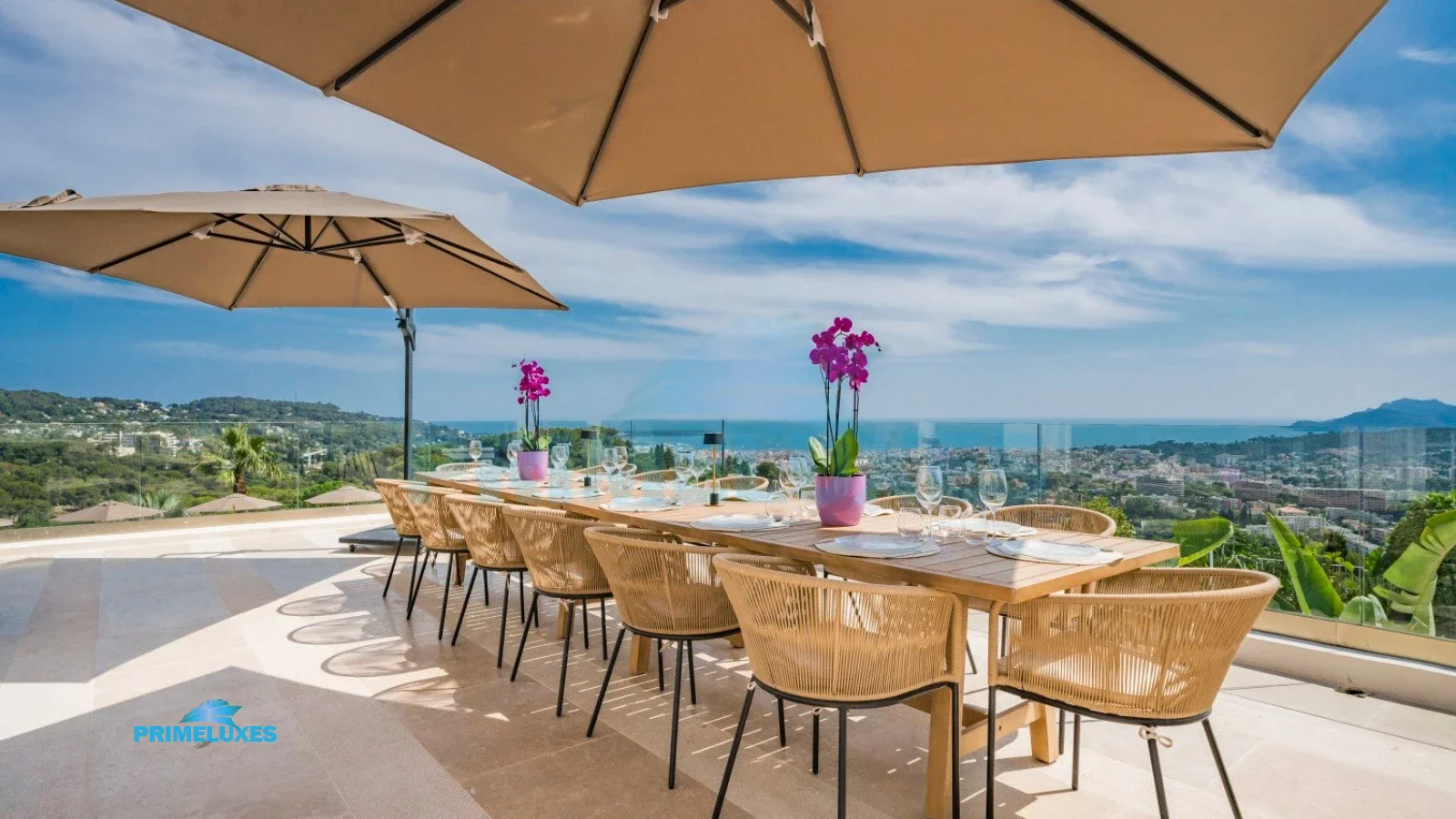 The spacious design balances indoor elegance with outdoor serenity, offering multiple lounge and dining areas, perfect for entertaining or unwinding under the Riviera sun.