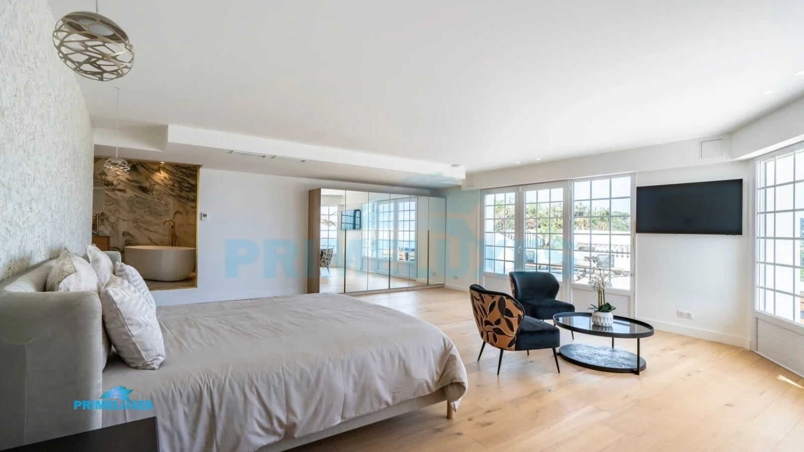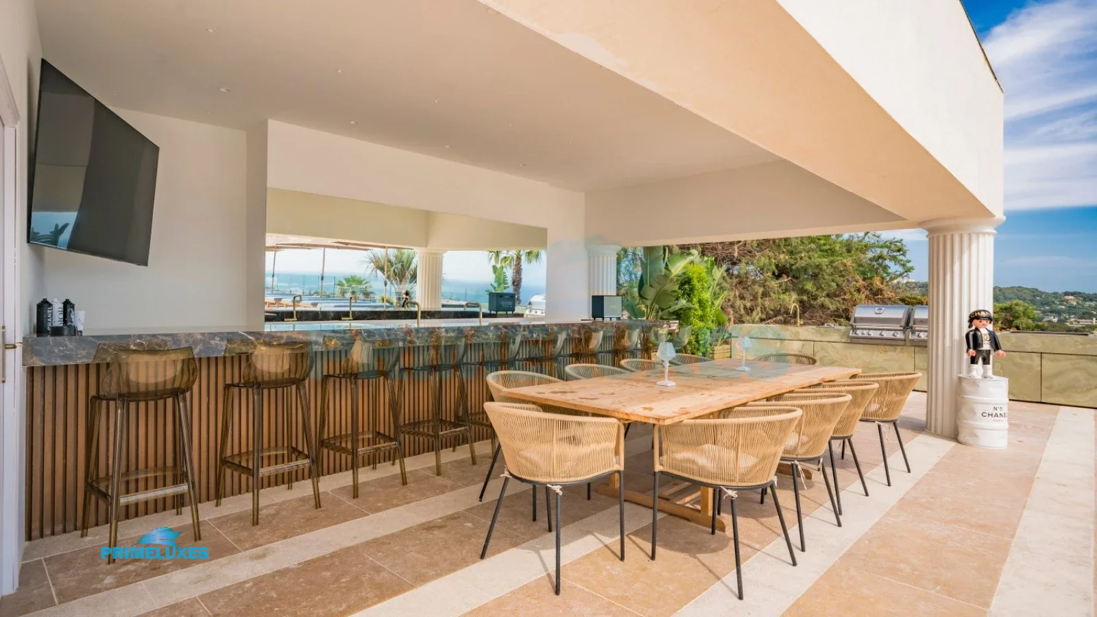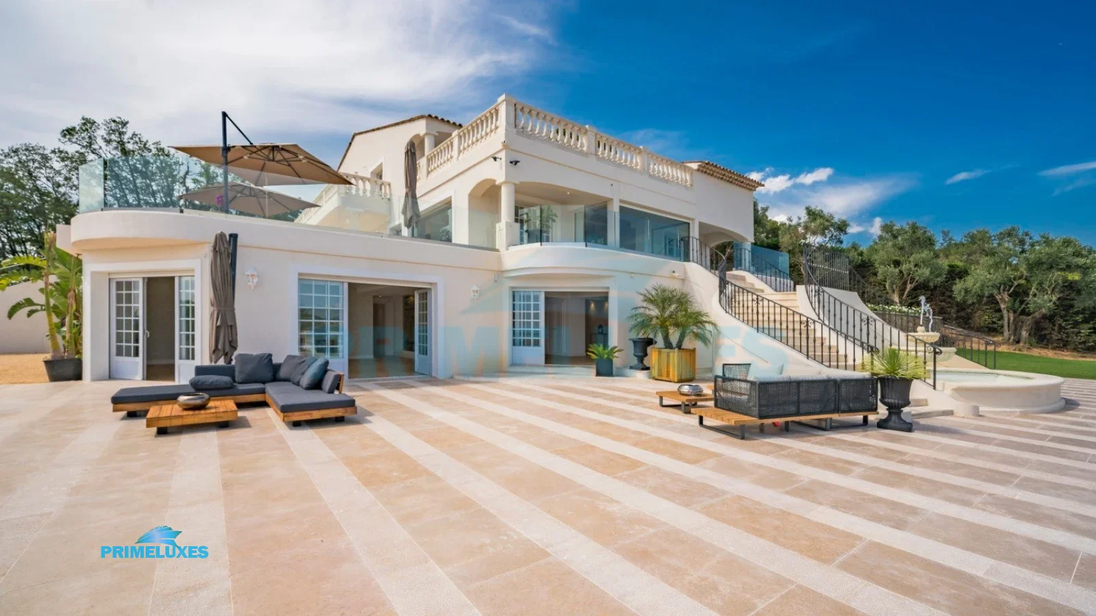 The spacious design balances indoor elegance with outdoor serenity, offering multiple lounge and dining areas, perfect for entertaining or unwinding under the Riviera sun.