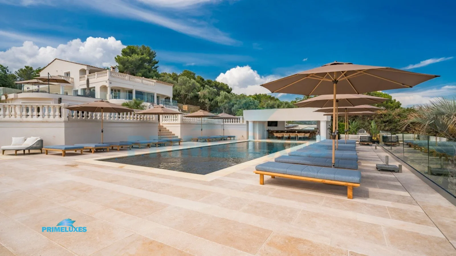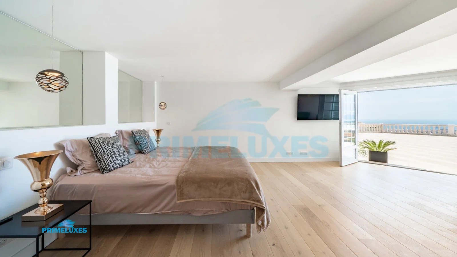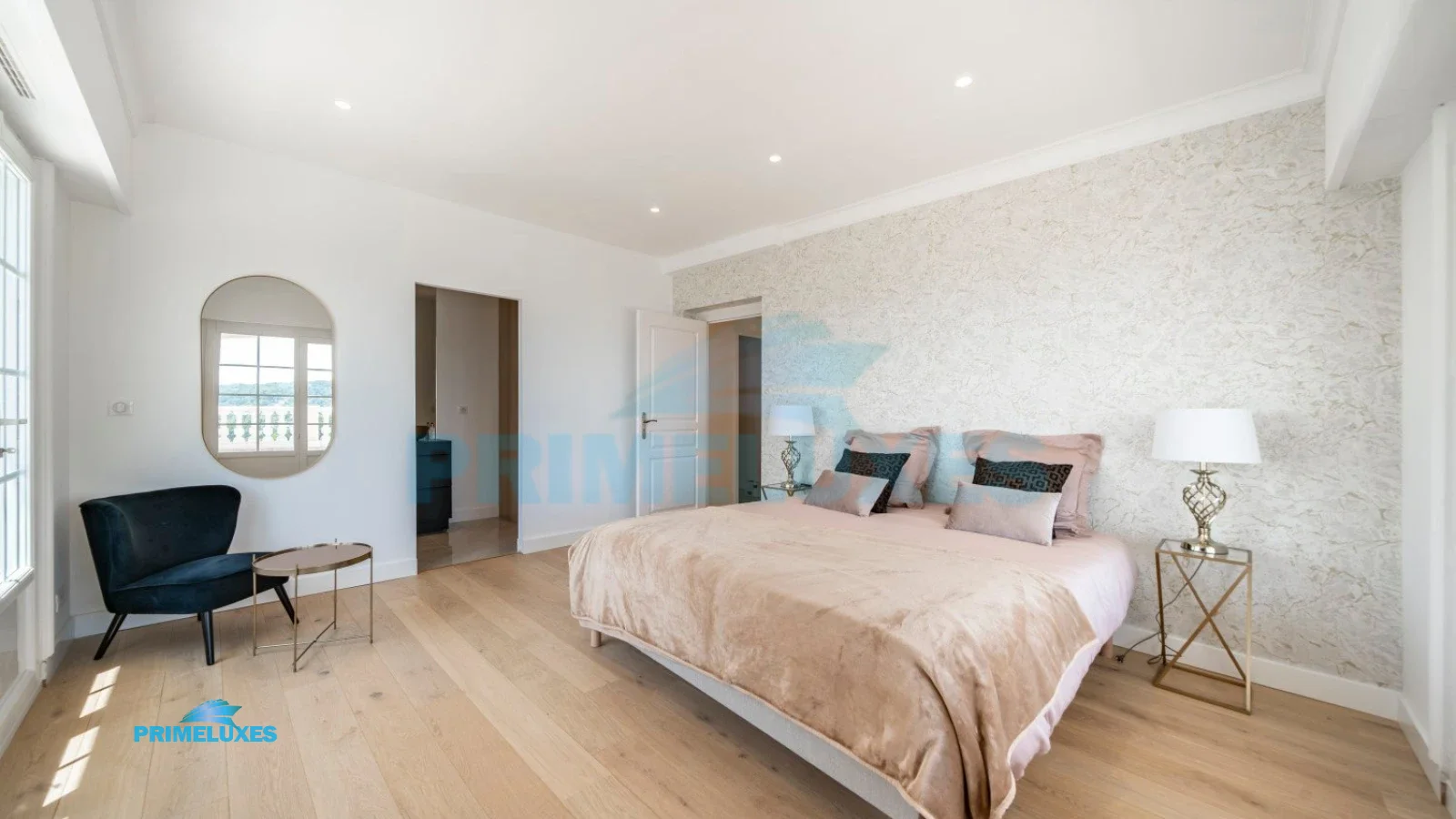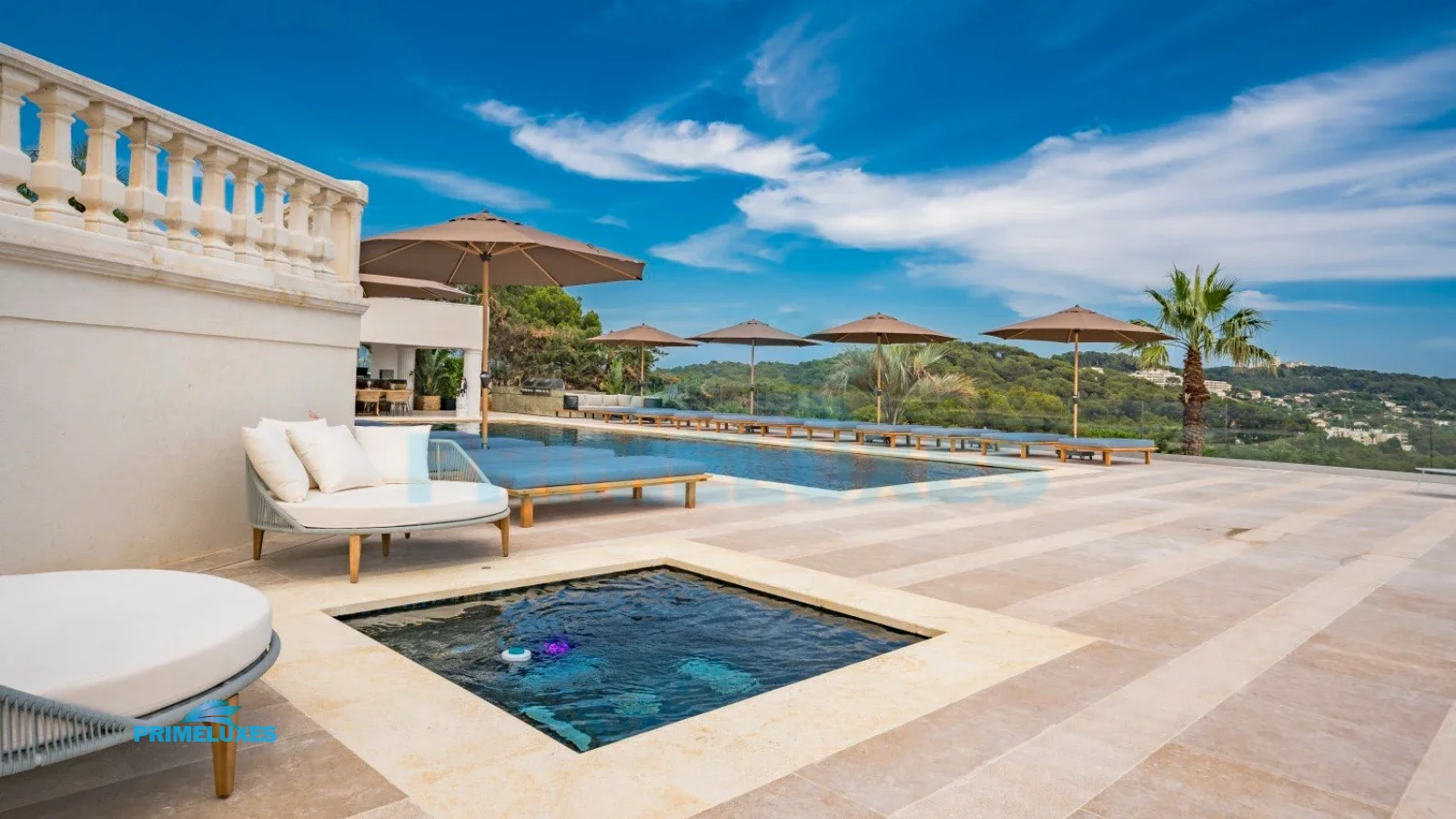 The spacious design balances indoor elegance with outdoor serenity, offering multiple lounge and dining areas, perfect for entertaining or unwinding under the Riviera sun.