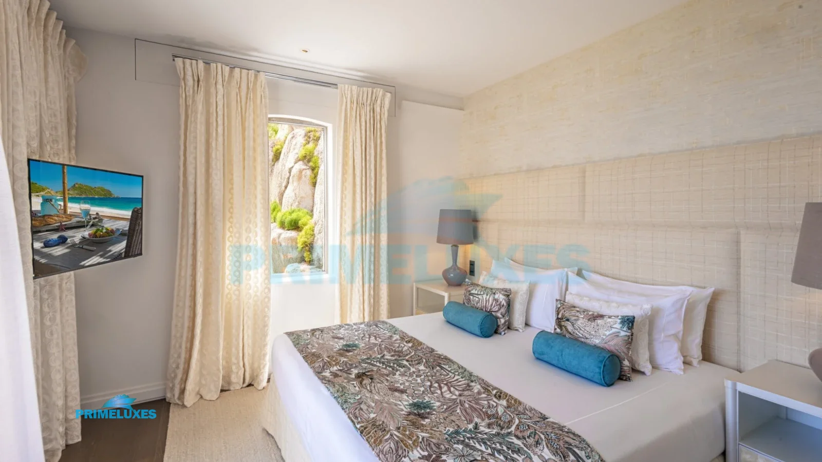 Spanning 400 sqm of refined living space within 5,000 sqm of lush, landscaped gardens, Villa Kalina blends architectural elegance with effortless comfort. The villa features six exquisitely designed bedrooms—four doubles and two twins—each with its own en-suite bathroom and a distinct aesthetic inspired by the world’s finest luxury hotels, yet retaining the warmth of a private residence.