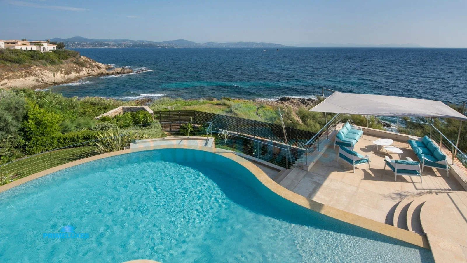 Nestled within the exclusive private estate of Les Parcs de Saint-Tropez, Villa Kalina emerges as a breathtaking seafront retreat on the coveted Pointe de la Rabiou. This prestigious enclave, renowned for its tranquility, security, and privacy, sets the stage for a truly exceptional escape. With direct sea access, sweeping views of the Mediterranean, and close proximity to the legendary village of Saint-Tropez and the famed Pampelonne beaches, this contemporary villa is a rare haven for those who seek both intimacy and sophistication.