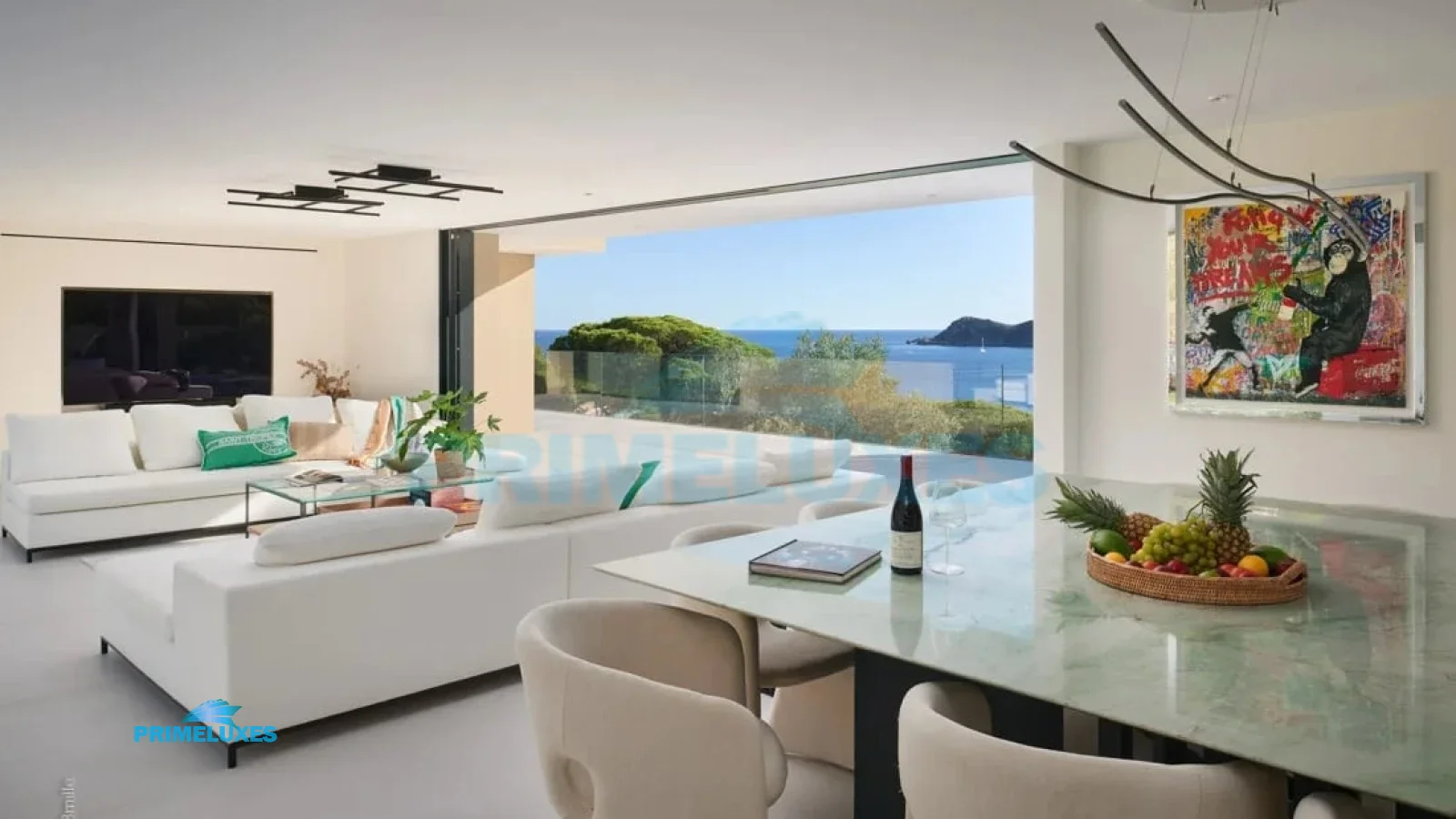 In Ramatuelle, within the heart of the prestigious Escalet estate, Villa Stella stands as a masterpiece of modern Mediterranean living. This exceptional villa, with its refined Californian-inspired architecture, offers 630 m² of elegant interiors set in a 3,200 m² landscaped park, where nature and luxury coexist seamlessly. Overlooking the breathtaking Cap Taillat, every moment here is framed by the dazzling blues of the Mediterranean and the golden hues of the Riviera light.