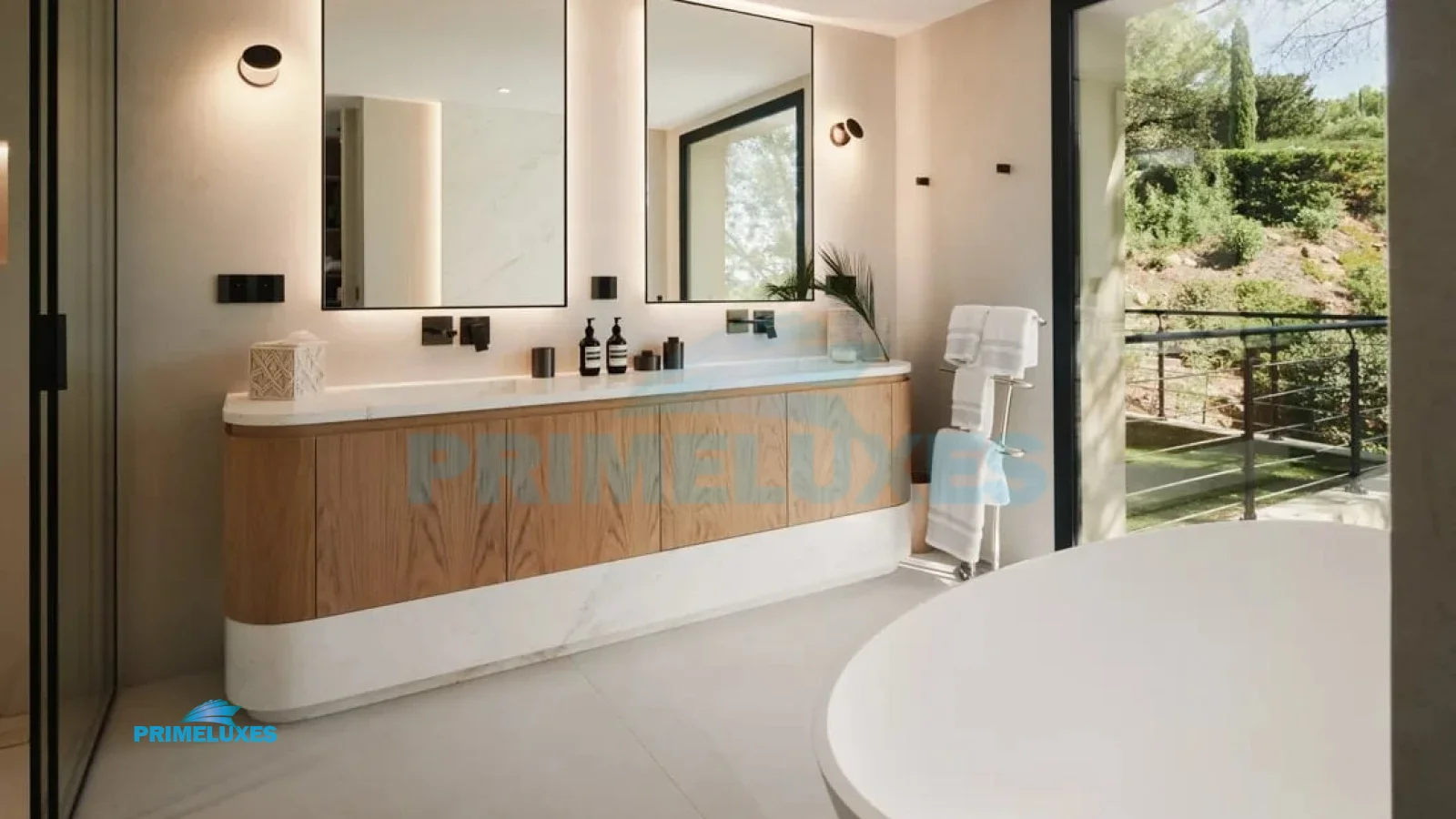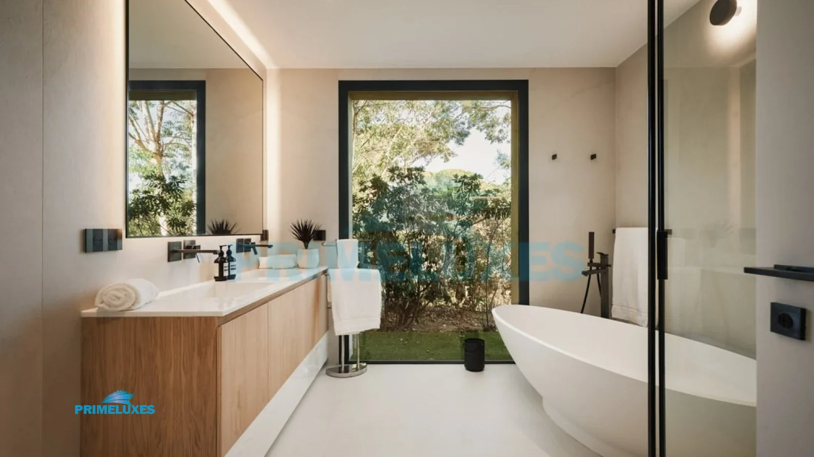 The villa also boasts 8 bathrooms (7 en-suite), blending natural light with premium finishes to create true wellness spaces.