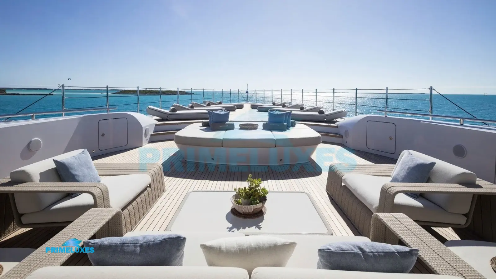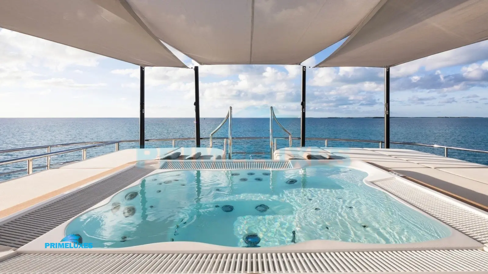 Sun Deck: A private oasis with a Jacuzzi, sunpads, bar, and al fresco dining.
