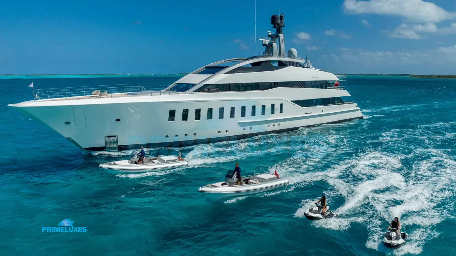 ✔ Water Toys & Tenders – Includes Jet Skis, Seabobs, inflatables, diving gear, and more for endless adventure.
