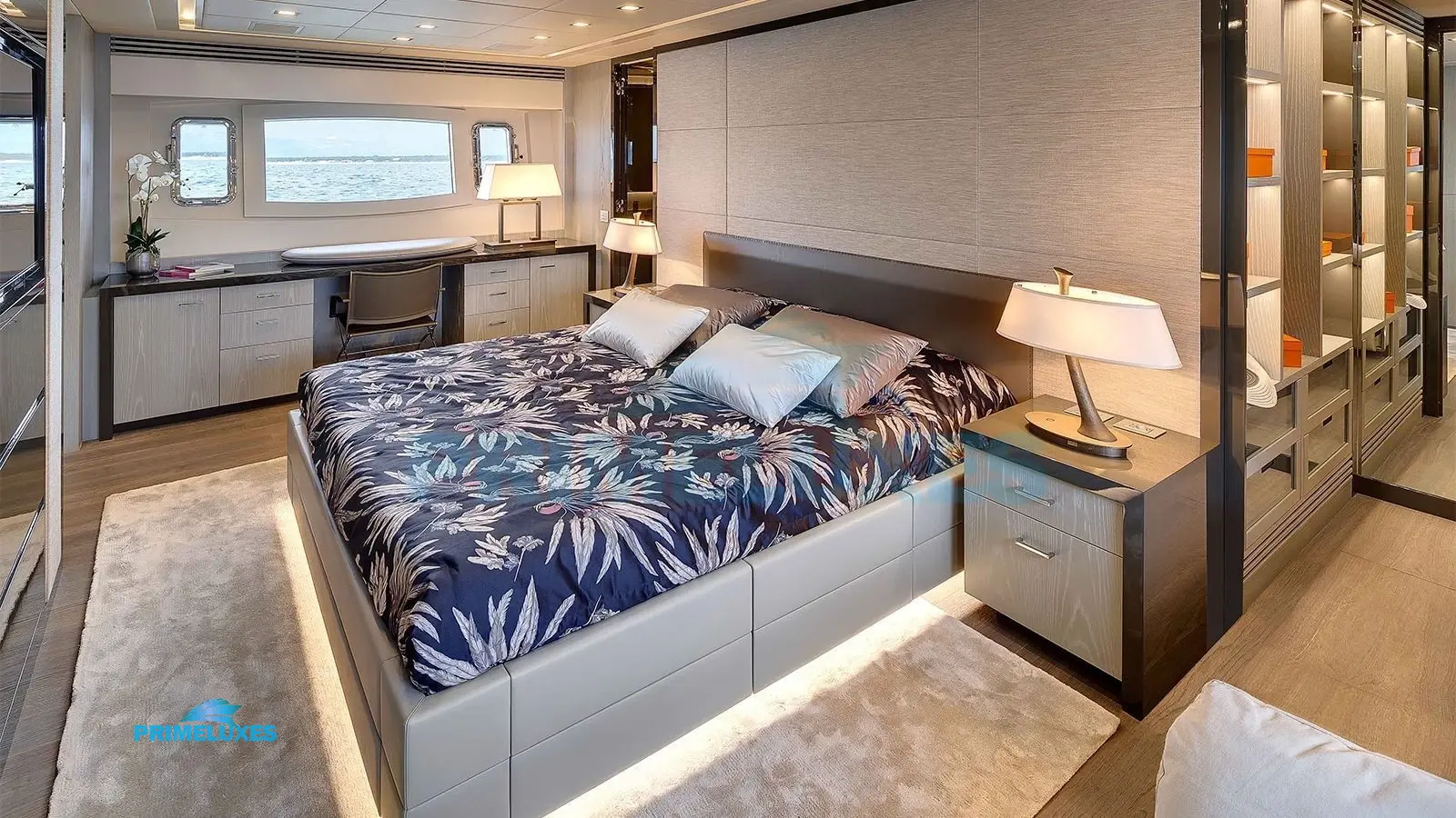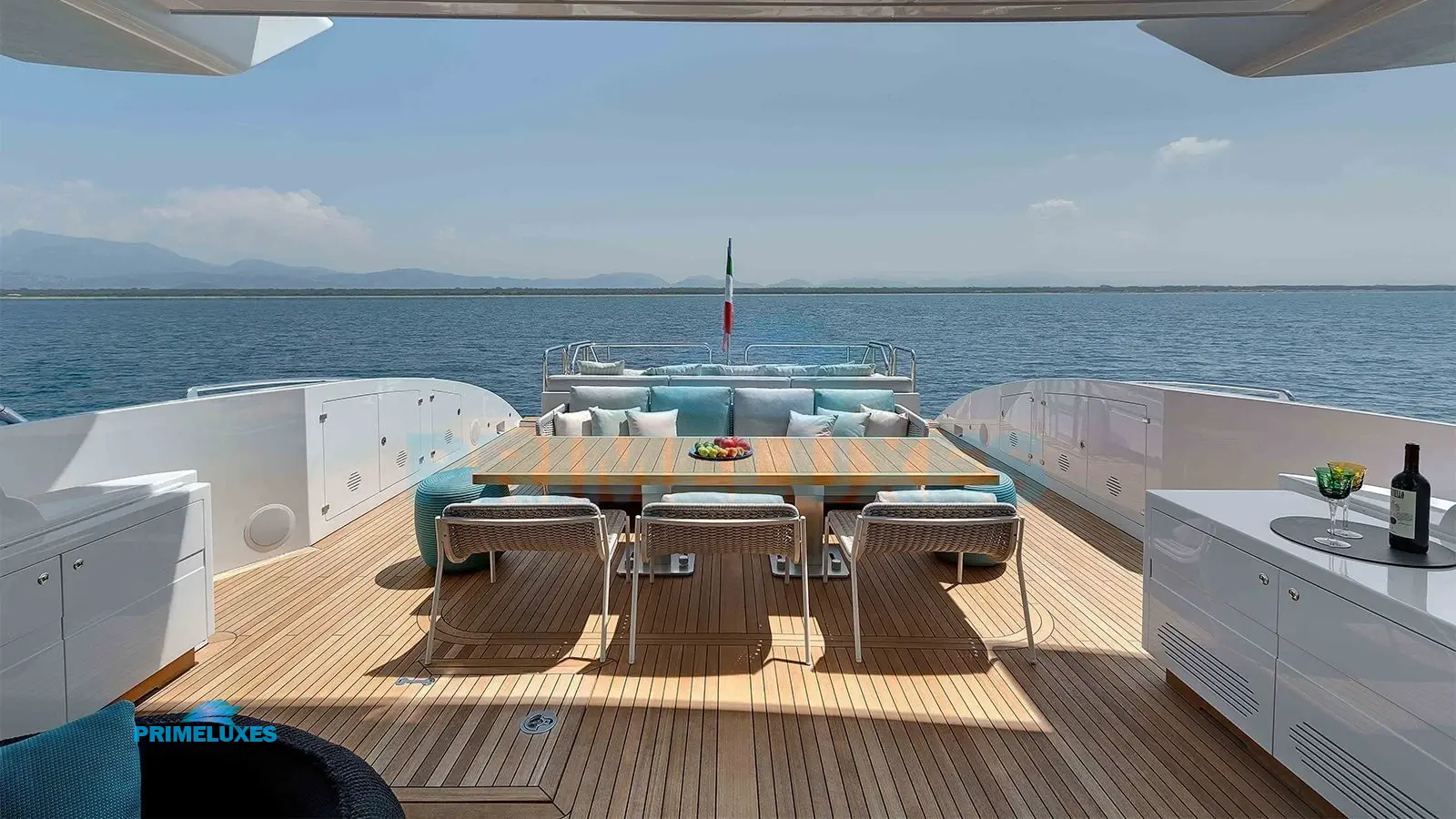 Experience the ultimate blend of performance and luxury aboard IARY, a stunning Mangusta 110 motor yacht available for charter with Primeluxes Yacht Charter. Designed for thrill-seekers and relaxation enthusiasts alike, this 33.77-meter (110-foot) masterpiece delivers exhilarating speeds, sophisticated comfort, and an array of premium amenities to ensure an unforgettable voyage along the Riviera or beyond.