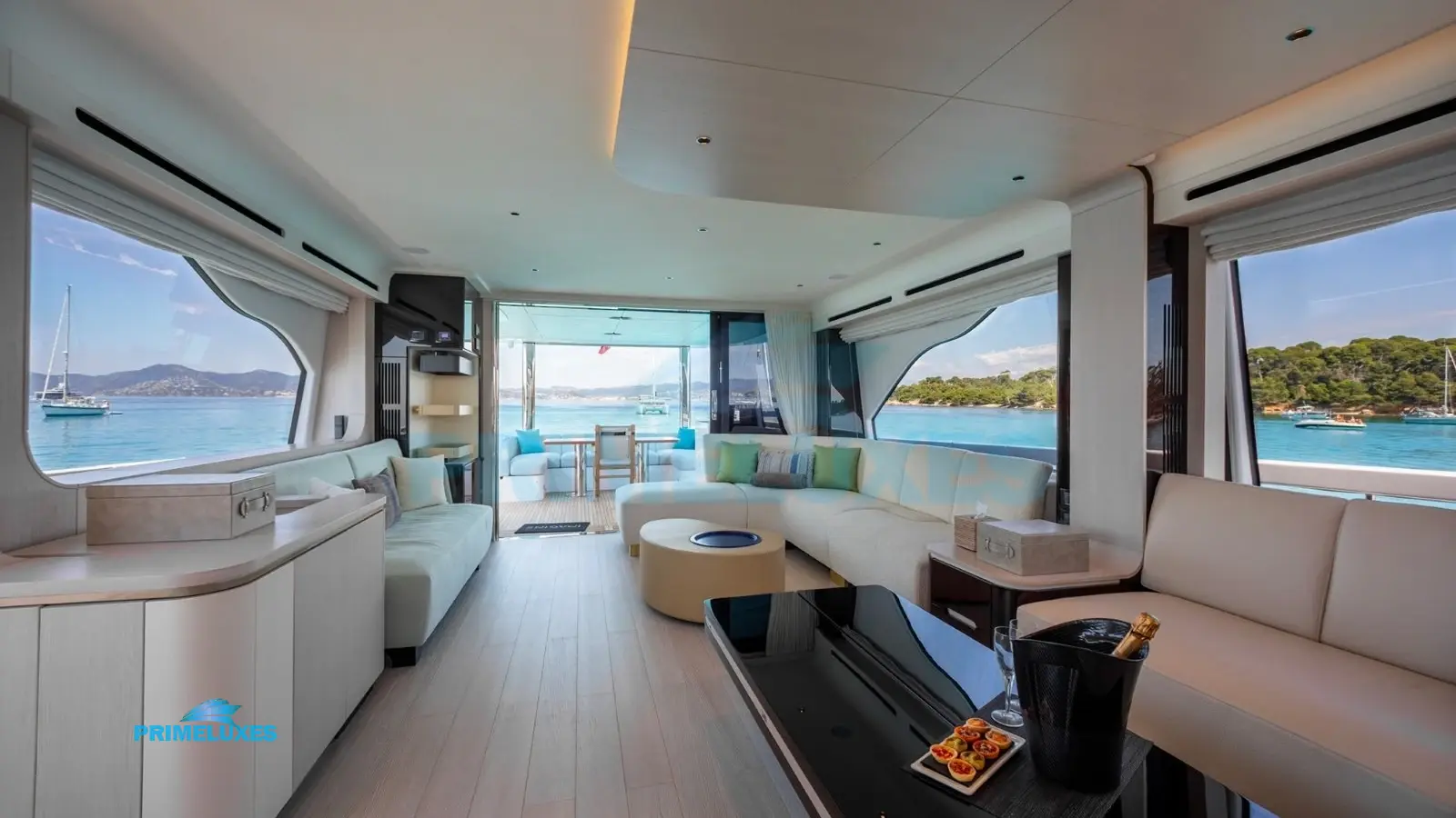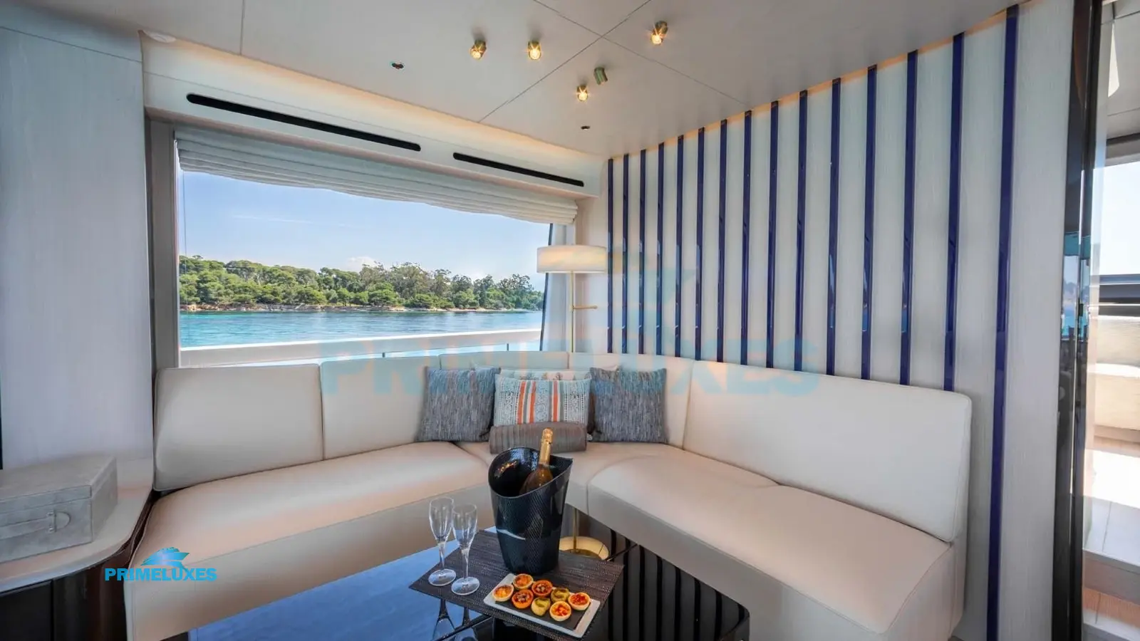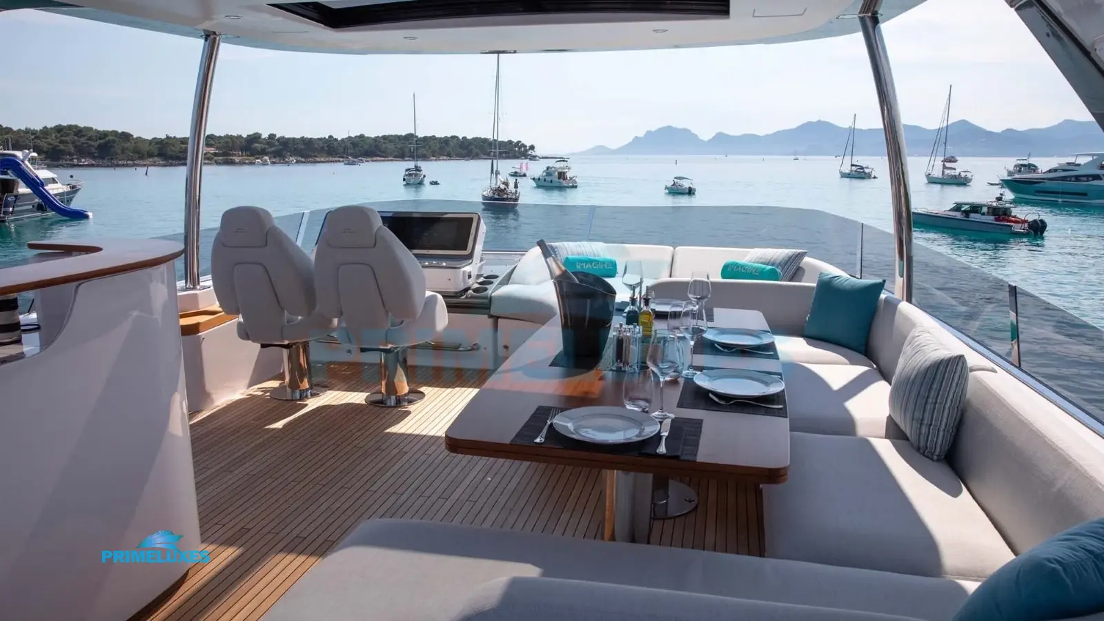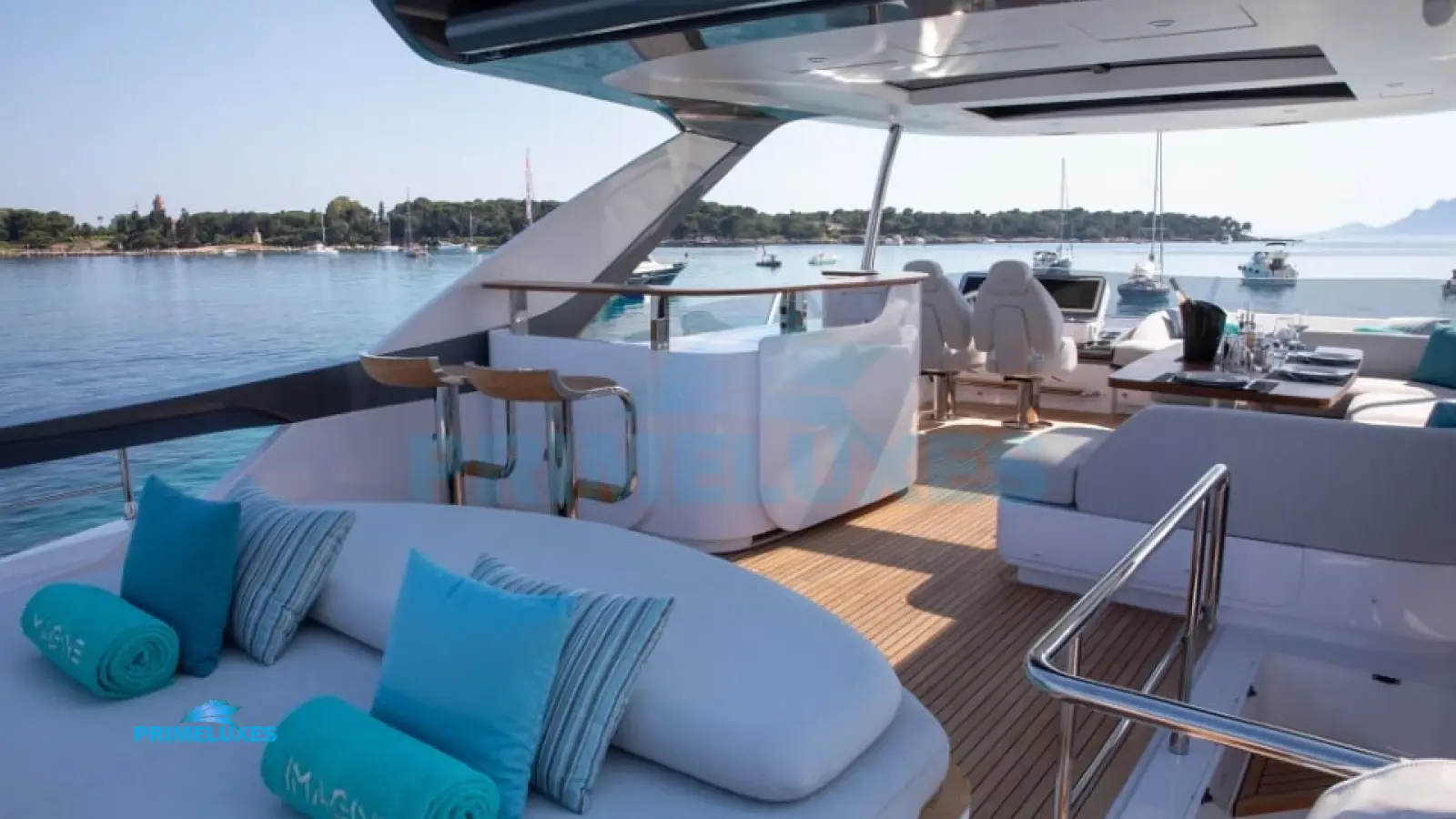Experience the pinnacle of luxury and performance aboard IMAGINE, an exquisite Azimut 78 Fly yacht available for charter with Primeluxes Yacht Charter. Designed for discerning travelers seeking elegance, comfort, and adventure, this 23.64-meter (78-foot) masterpiece combines cutting-edge design with exceptional amenities, ensuring an unforgettable voyage along the French Riviera and beyond.