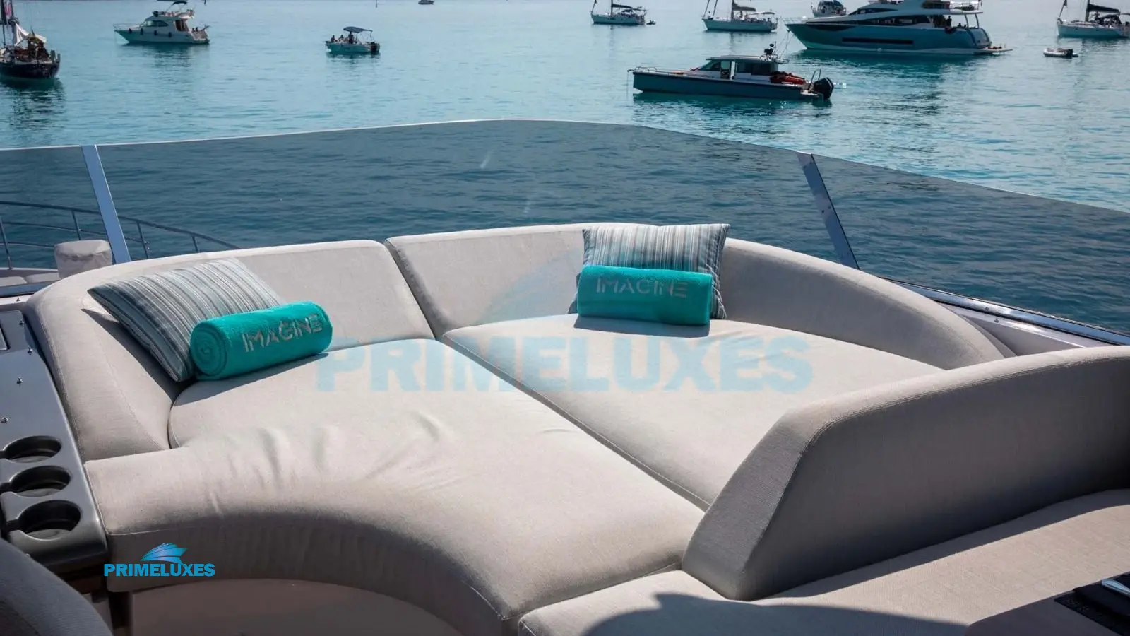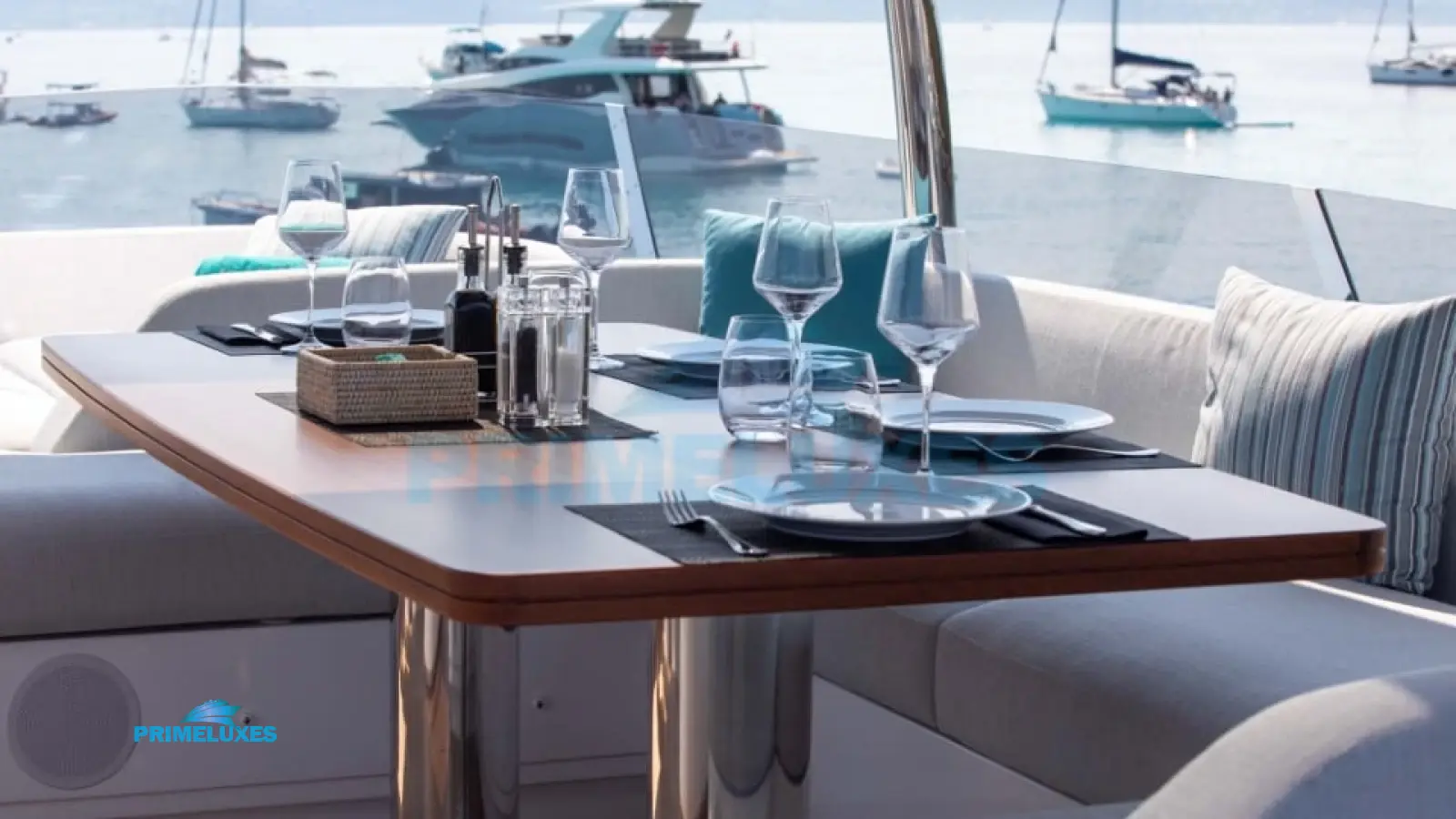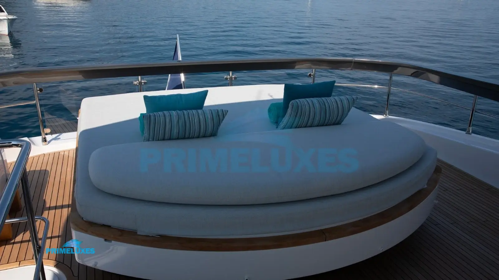 Fly Bridge: A stunning open-air lounge area with seating, sun pads, and panoramic views—ideal for alfresco dining or sunset cocktails.