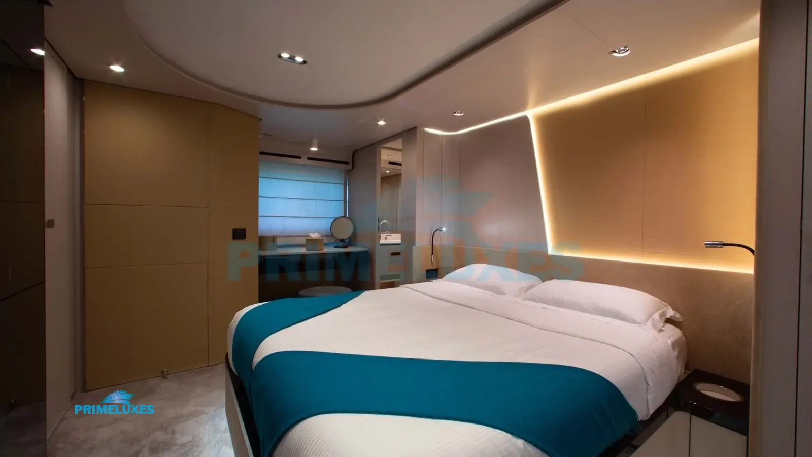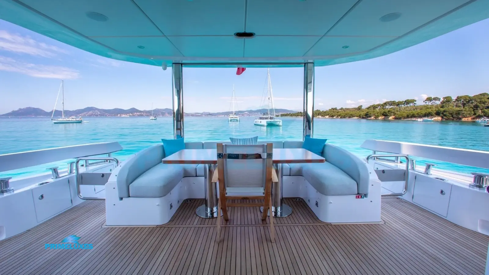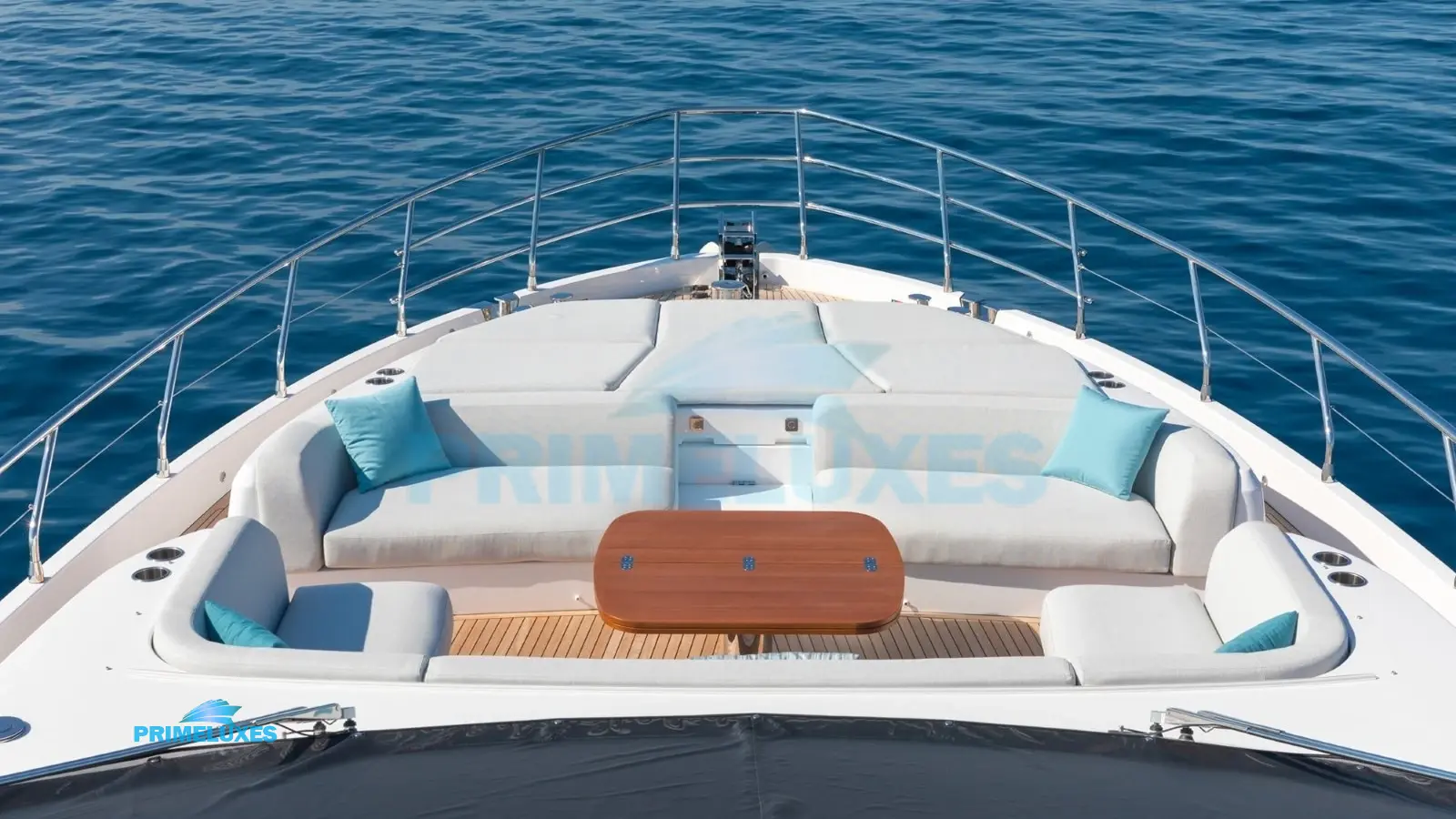 Fly Bridge: A stunning open-air lounge area with seating, sun pads, and panoramic views—ideal for alfresco dining or sunset cocktails.