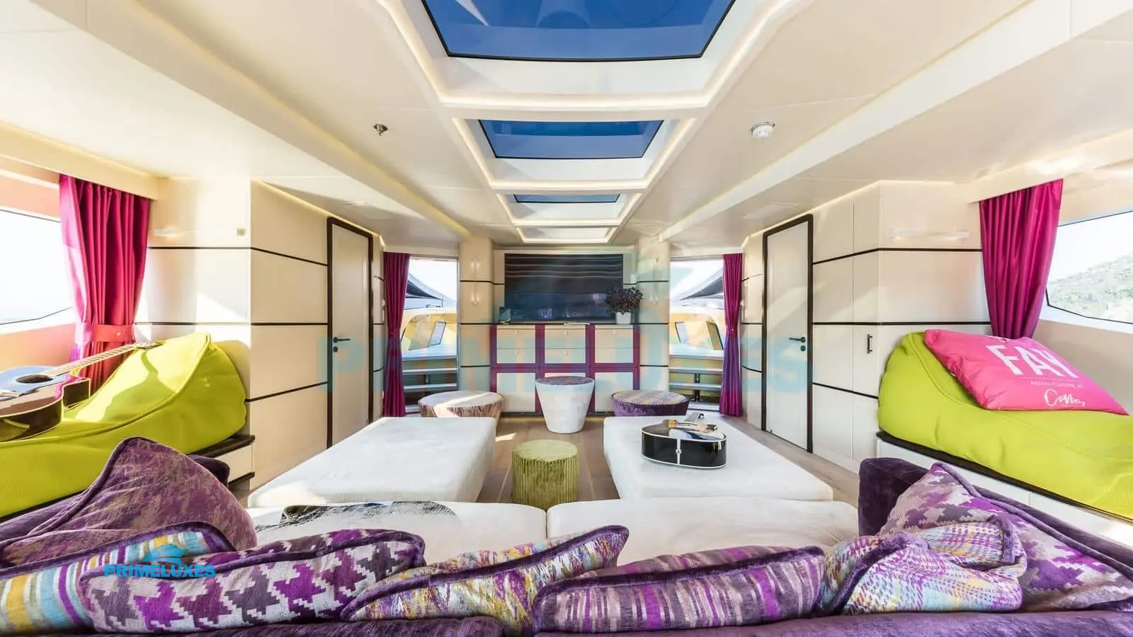 Sun & Relaxation: Unwind in the flybridge jacuzzi, lounge on the foredeck sunpads, or sip cocktails at the stylish bar.