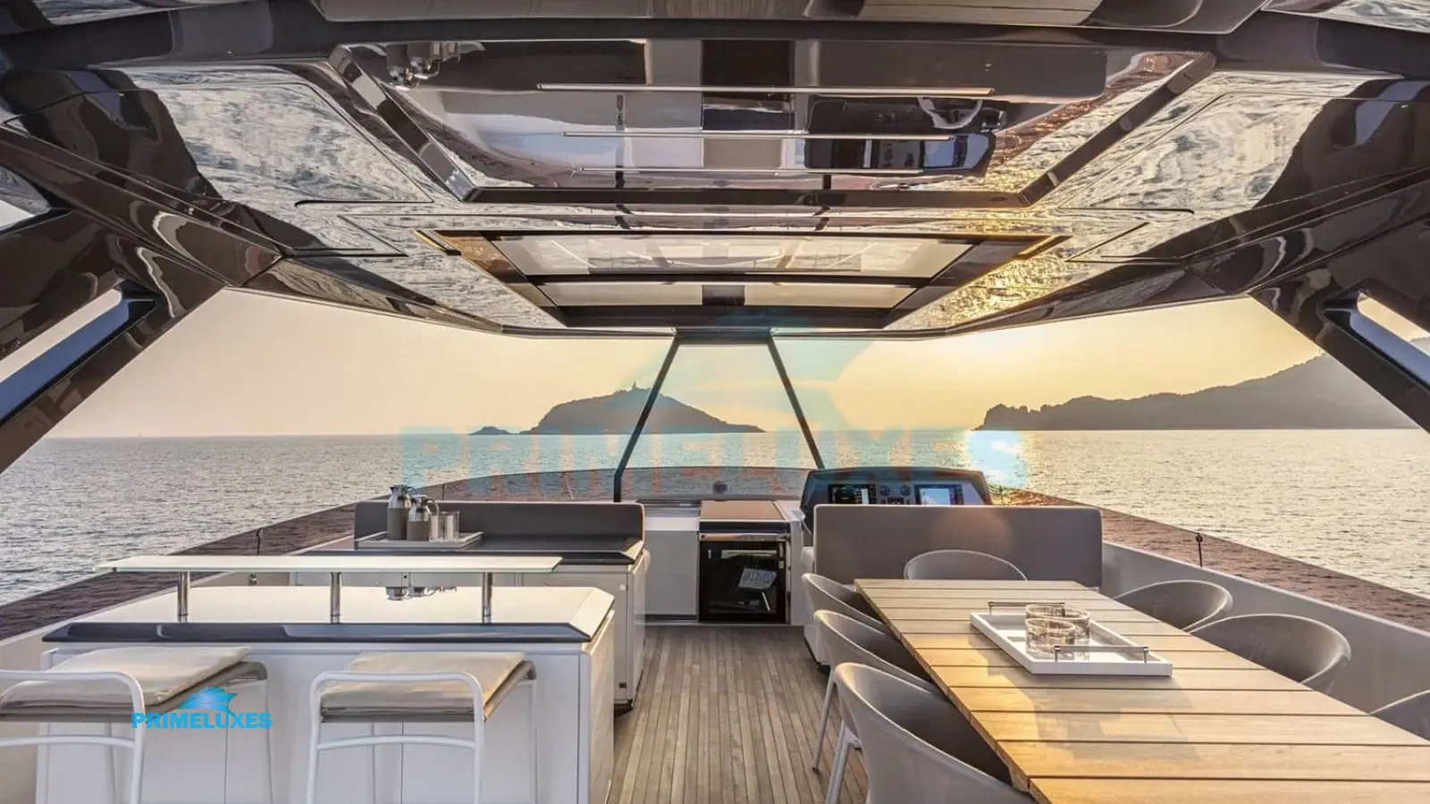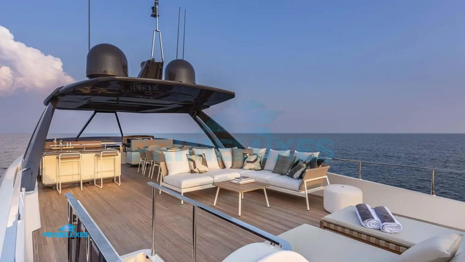 Flybridge – Expansive sunbathing and lounging area with panoramic views