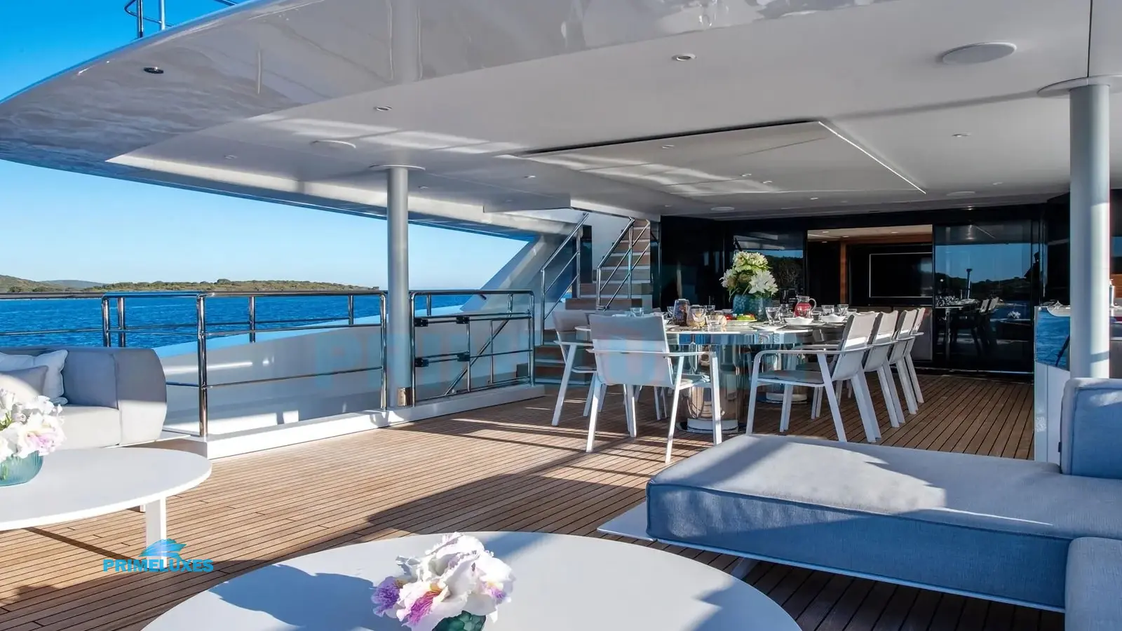 A highly trained 9-member crew, including a private chef, ensures seamless service. Primeluxes Yacht Charter provides a personal concierge to customize your itinerary, from gourmet dining to exclusive shore excursions.
