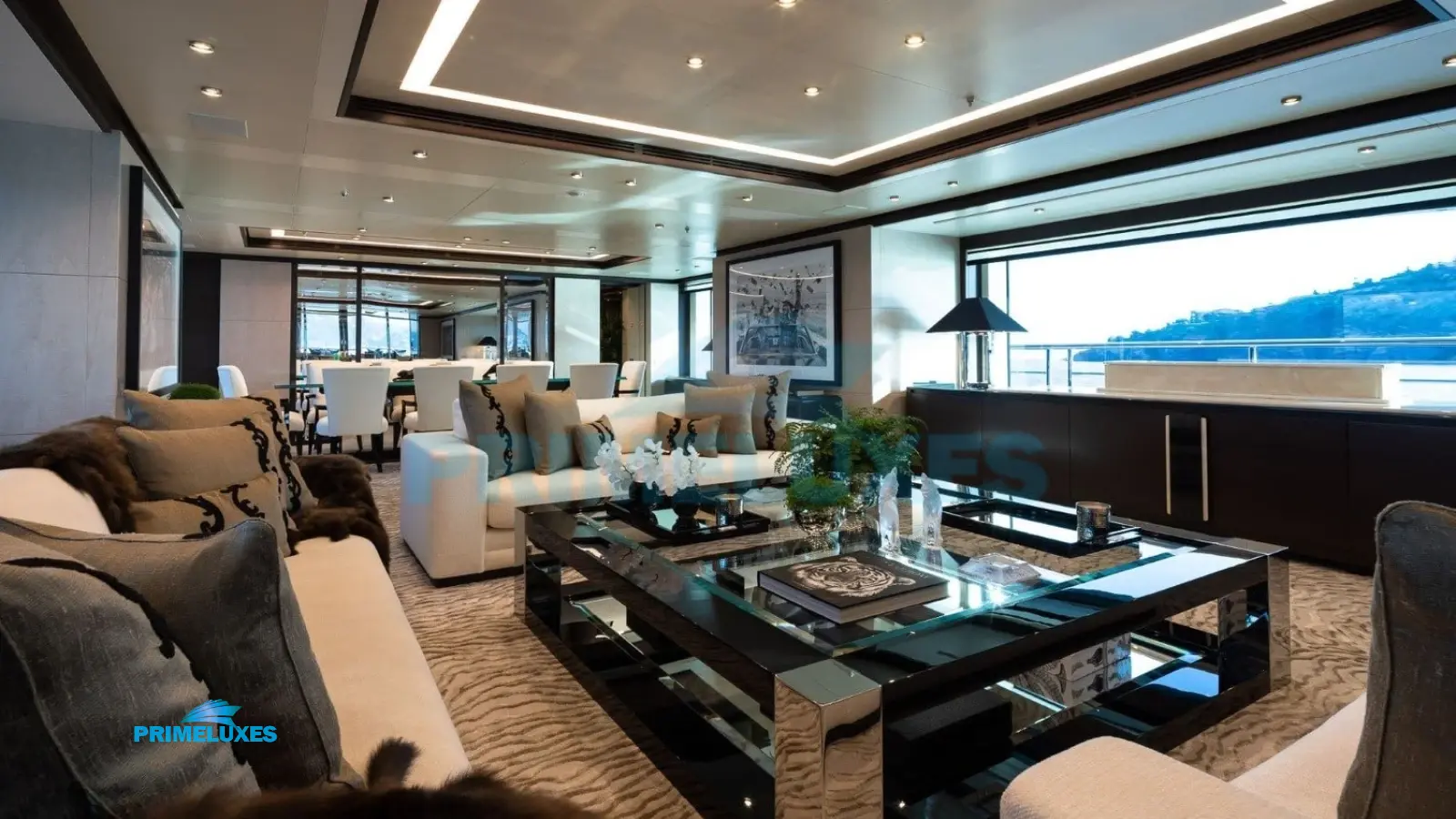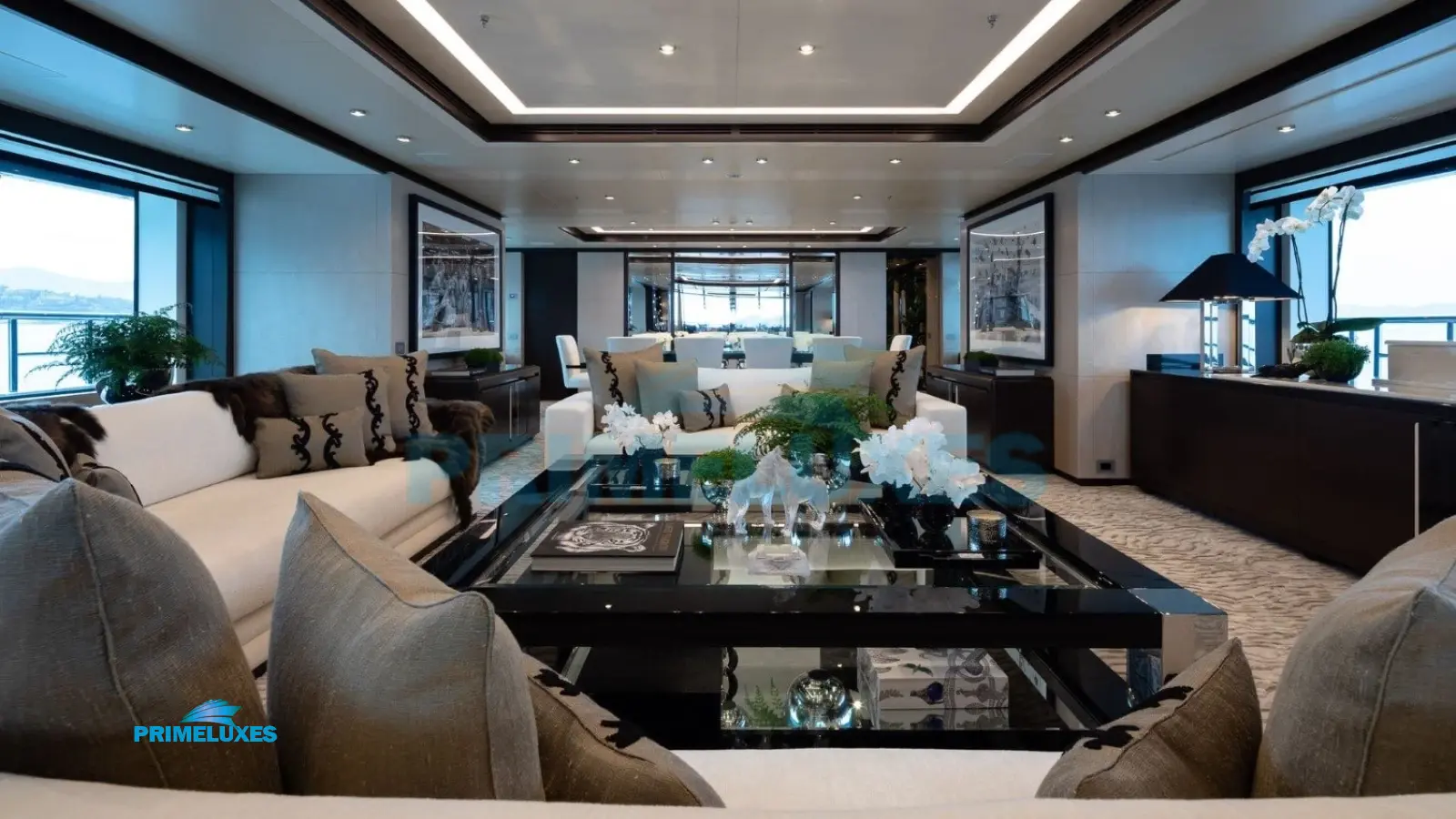 Main Deck Lounge: Expansive seating areas perfect for relaxation, complemented by a state-of-the-art sound system.